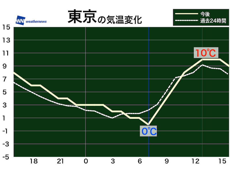 昼間は晴れて今日より気温は少し高くなりますが、風が冷たく、体感温度は今日と同じくらいになるとみられます。