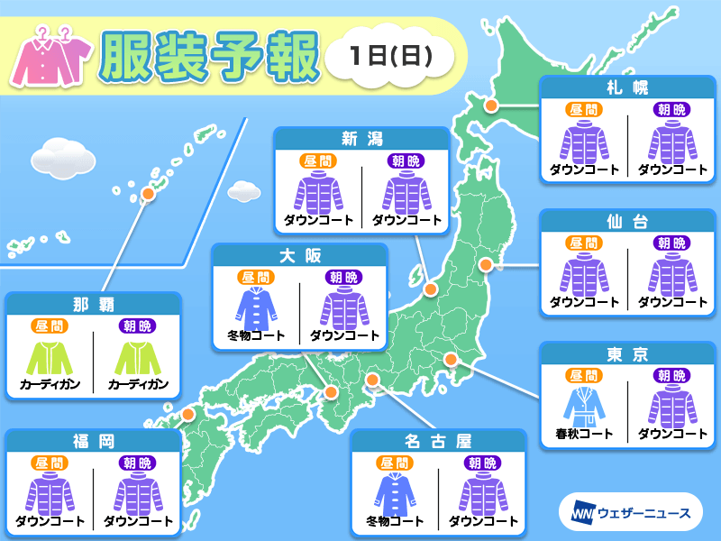 今日と明日の気温変化を比較して、気温に適した服装をご提案します。ウェザーニュースの服装予報もご活用ください。