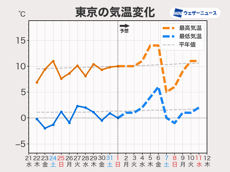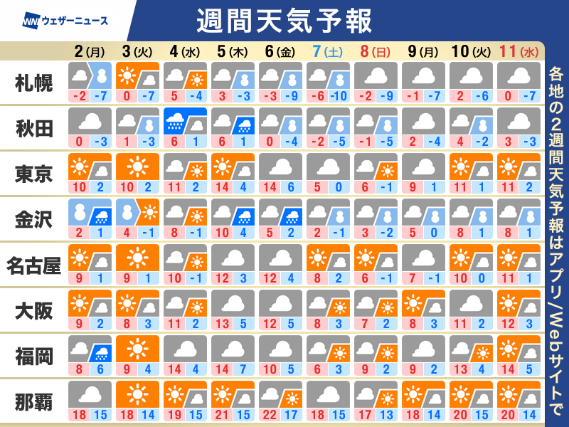 週中頃に寒さ緩むが週末は再び真冬の寒さに
