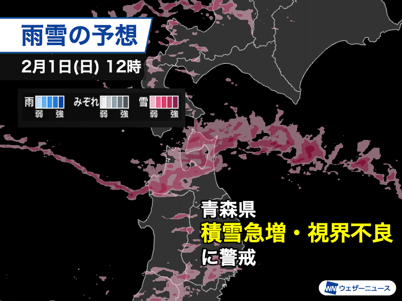 青森市は昨日1月31日(土)午後から今日の未明にかけて雪が強く降り、2時までの12時間降雪量(雪の強さに相当)は19cm、2時時点の積雪深(地面からの雪の厚み)は172cmとなりました。