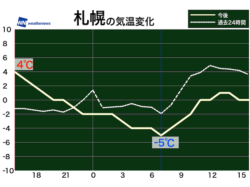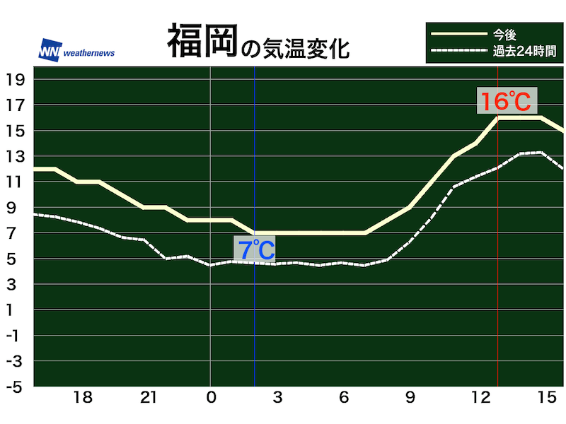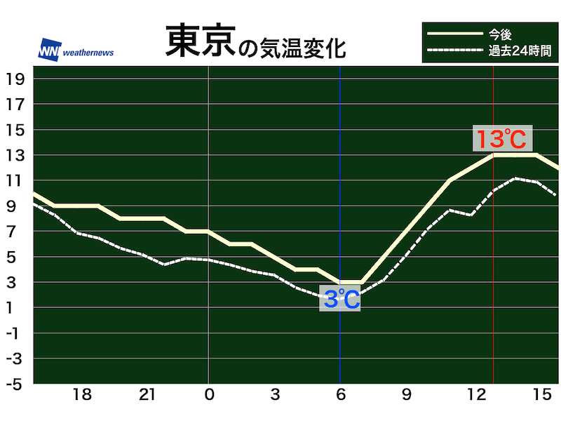 朝の冷え込みは今朝よりも低く、昼間の気温も今日ほどは上がりません。