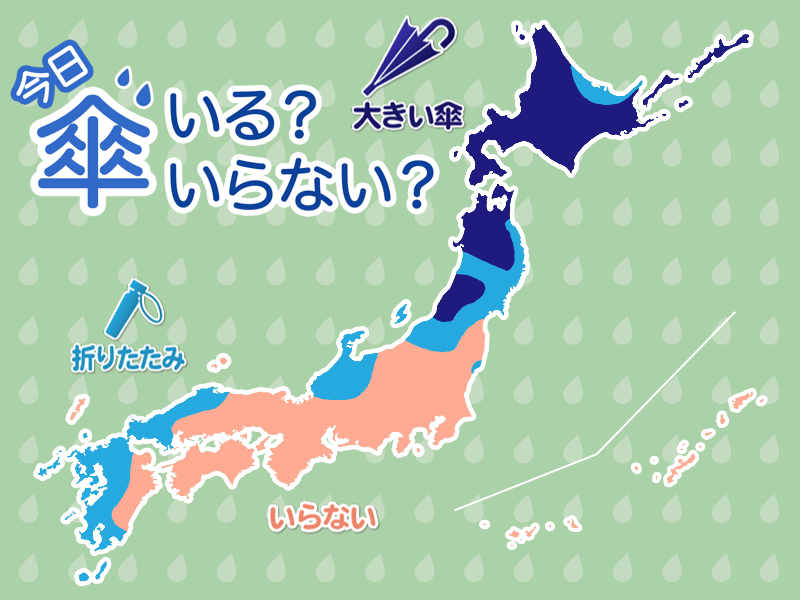 九州〜中国地方の一部はにわか雨が心配なので折りたたみ傘があると安心です。
