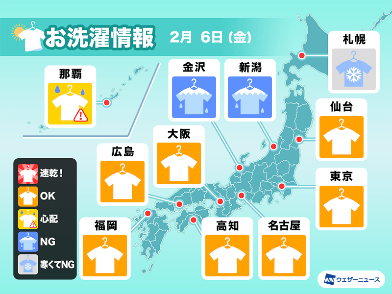 2月6日(金)の洗濯天気予報
