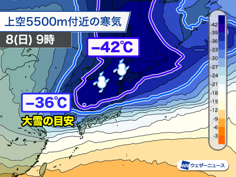 7日(土)からは冬型の気圧配置が強まり、8日(日)をピークに上空に強い寒気が流れ込む予想です。日本海側の地域を中心に大雪となる見込みで、積雪の急増や猛吹雪のおそれがあります。西日本の太平洋側でも強い雪の降る可能性があり、交通への影響が懸念されます。