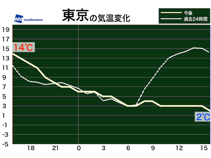 朝は今朝よりも大幅に低く、冷え込みが強まります。昼間も気温が低いままで厳しい寒さです。