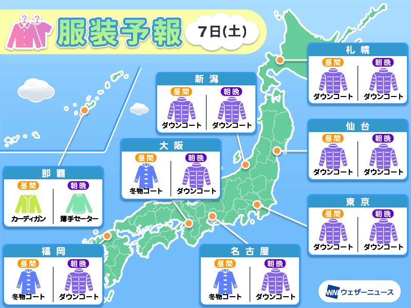 2月7日(土) 各地の気温変化と最適な服装