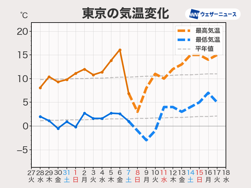 その後、10日(火)以降は気温が上昇傾向です。大幅な気温のアップダウンで体調を崩さないようお気を付けください。気温が上昇すると花粉の飛散開始も心配です。敏感な方は花粉症対策を。