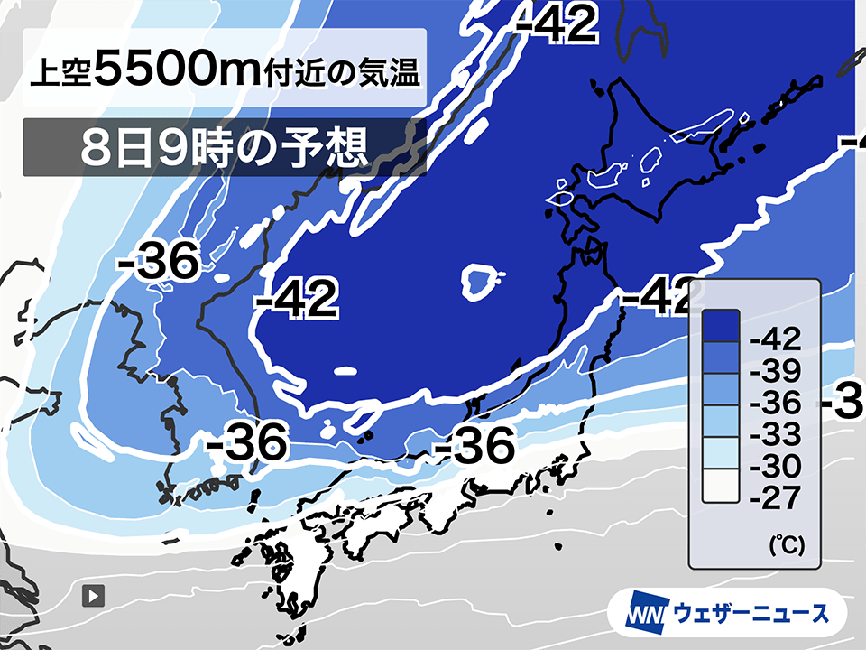 上空の強い寒気が南下