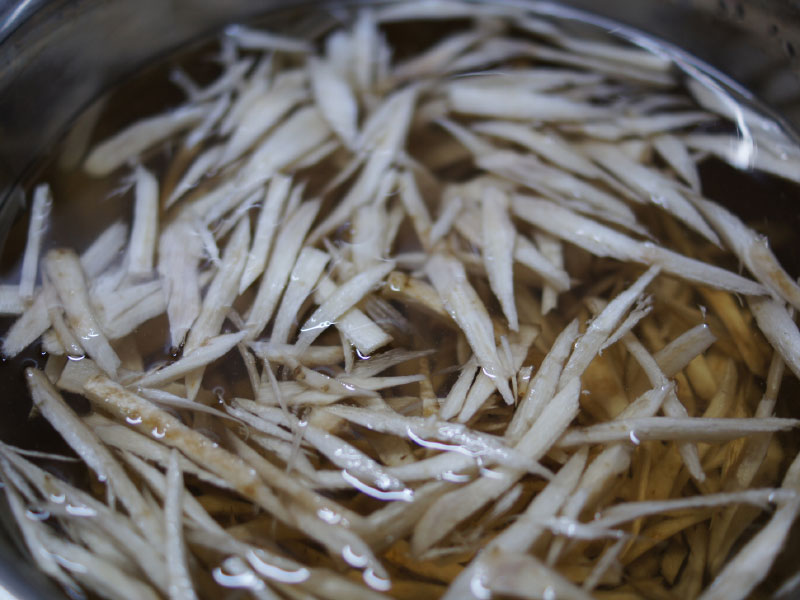 水にさらせば、見た目は白っぽくはなりますが、さらした水にポリフェノールだけでなくアミノ酸などの旨みや栄養成分までも溶け出してしまうのです。