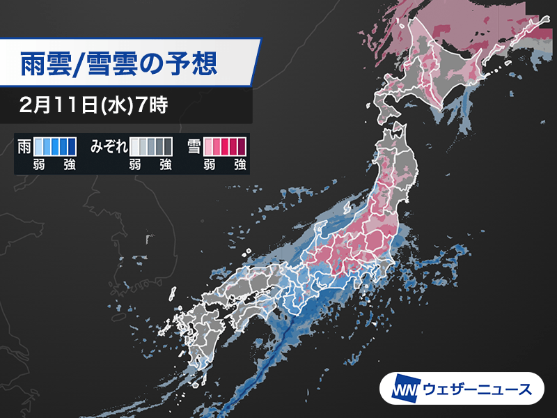 建国記念の日は広範囲で雨や雪 太平洋側は空気潤う