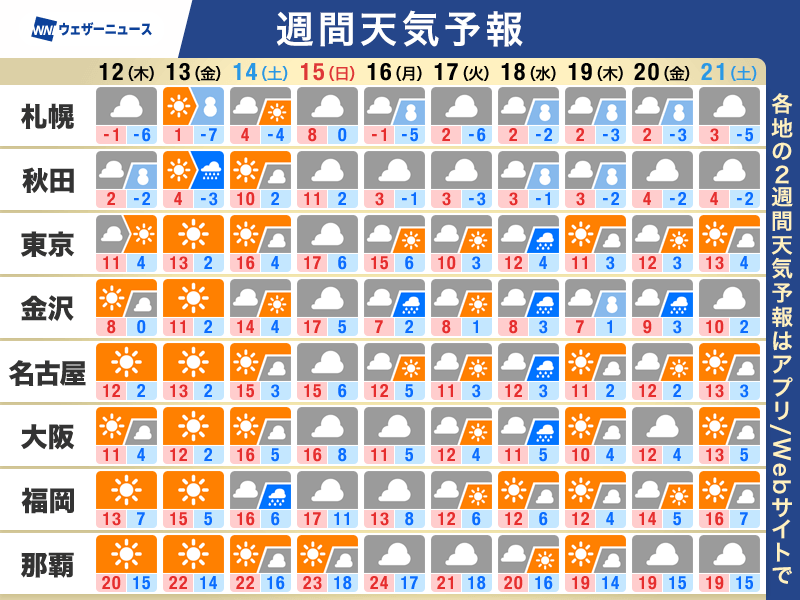 今日・明日〜2週間先までの週間天気予報今日・明日〜2週間先までの週間天気予報