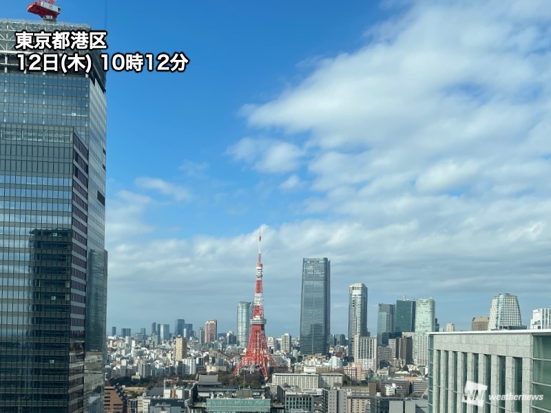 日差しによって、気温は昨日11日(水)より上がる予想です。服装で上手に体感温度を調節してください。