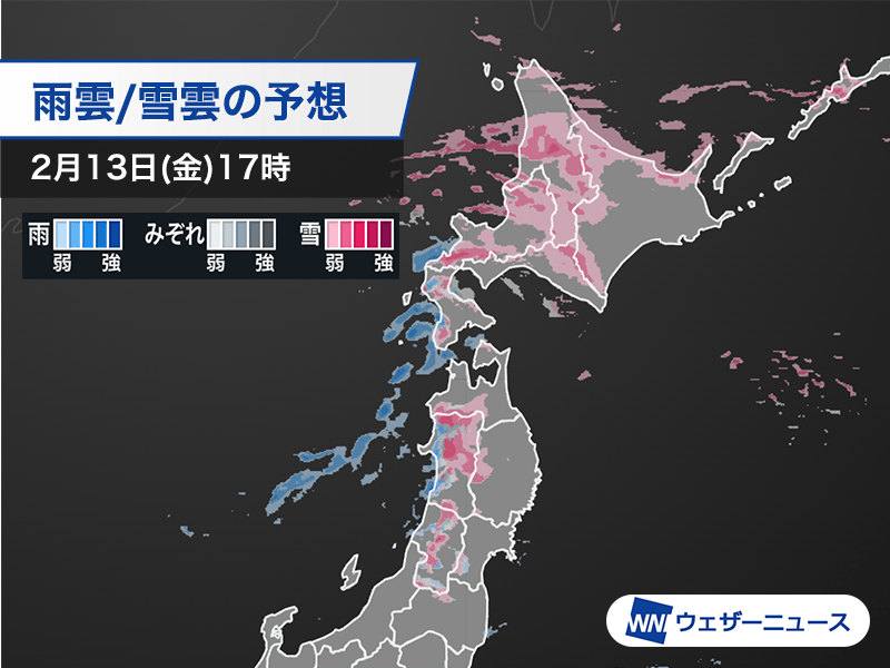 寒気は今日12日(木)より弱く、道南や東北の平野部は雨の所が多い見通しです。路面状態の悪化にもお気をつけください。