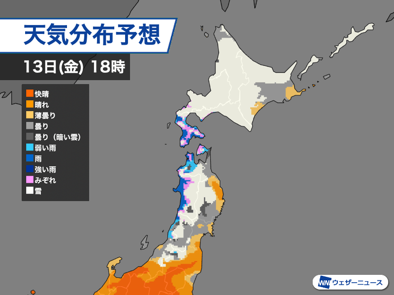 道南〜東北は沿岸中心に雨寄りに