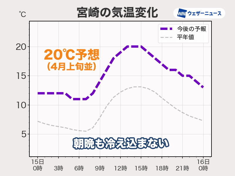 九州から関東は20℃前後の暖かさ