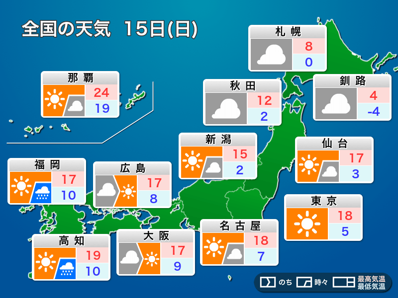 明日2月15日(日)の天気予報