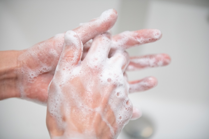 「洗い残しができないよう、指輪や時計は外します。まず、流水でざっと汚れを落としたら、石けんやハンドソープを手に取って泡立てます。