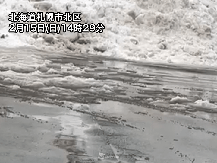 一旦、溶けた路面が凍結したり、その上にさらに雪が積もって滑りやすくなるとみられます。今夜から明日16日(月)の朝も歩行時や車の運転時は要注意です。