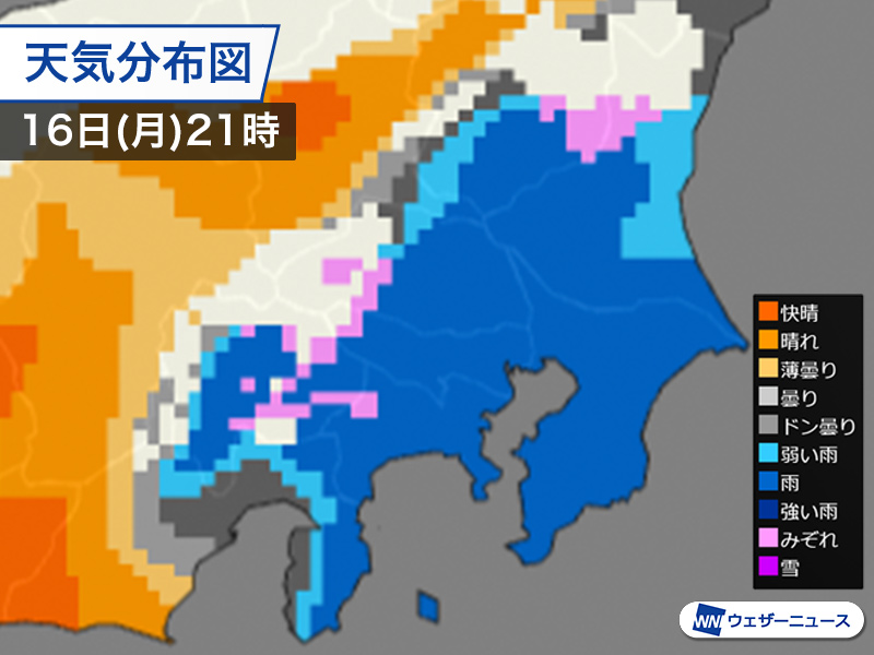関東は夜に雨や雪に、北日本は冬の天気に戻る