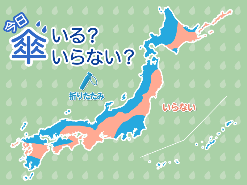 また、関東周辺も天気が下り坂で、夕方以降雨が降りやすくなります。北部や西部の山沿いでは雪が混じる見込みです。九州南部もにわか雨があります。外出の際は折りたたみ傘をお持ちください。
