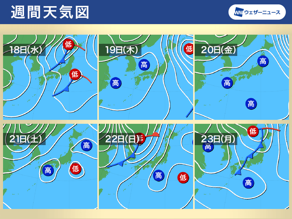 18日(水)の北日本は荒天に注意 三連休後半に天気崩れる可能性