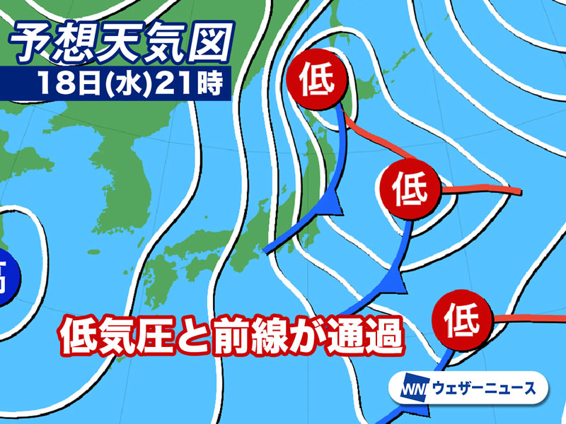 前線通過で北日本や北陸は荒天に注意 夜は寒気が南下