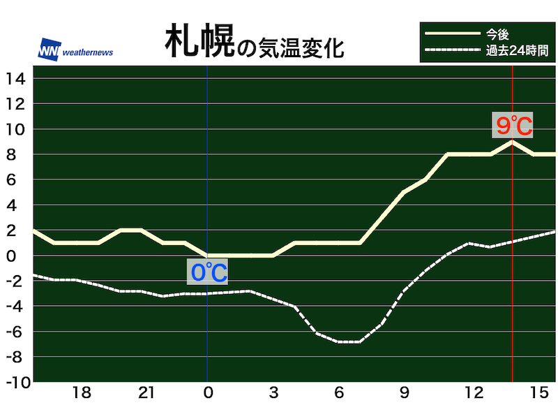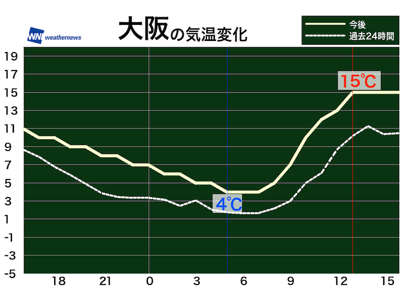 昼間は気温が上昇し、今日よりも大幅に高くなる予想です。