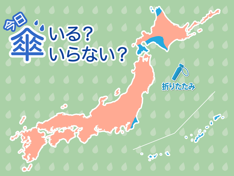 関東は晴れるところが多いものの、茨城県や千葉県の沿岸部ではにわか雨の心配あり。南西諸島も雨の降る可能性があります。