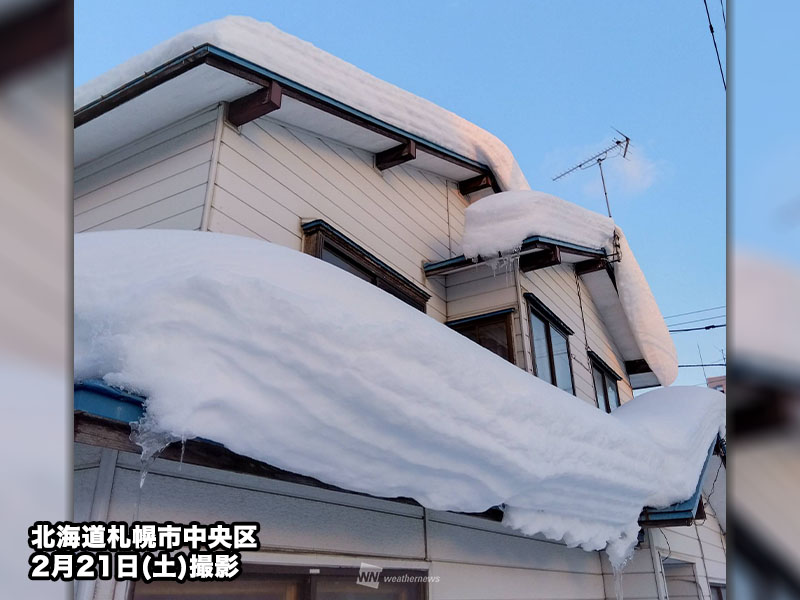 北日本の日本海側や北陸、山陰では山沿いを中心に積雪が多く残っています。記録的な大雪に見舞われた札幌では21日(土)10時時点の積雪深が97cm、青森では95cmです。