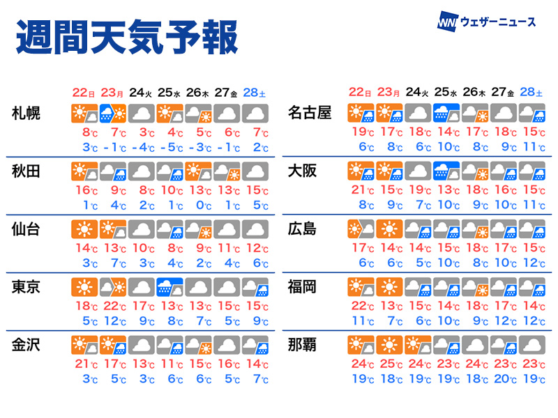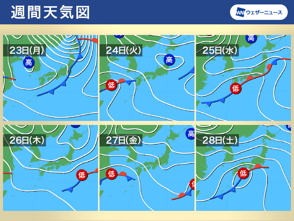 三連休明けは西から雨エリアが拡大 25日(水)は広く本降りの雨に