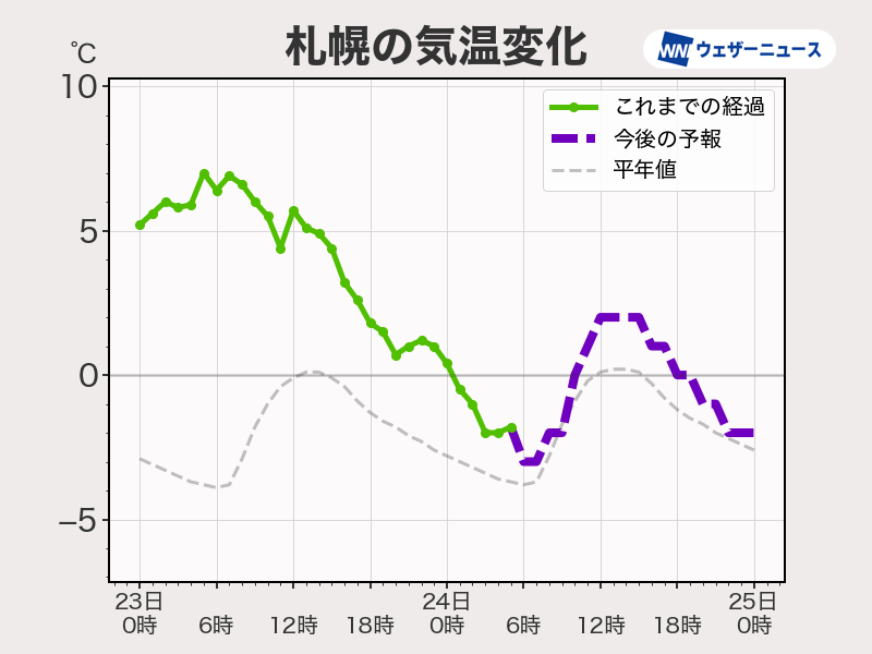朝の冷え込みは今朝よりも強く、北海道はほとんどの所が氷点下に戻ります。一度溶けた雪が再び凍結するため足元にご注意ください。