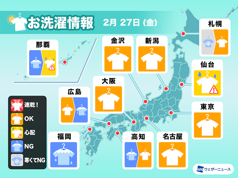 今日の天気で、洗濯物を外干しできるかどうかをお伝えします。
