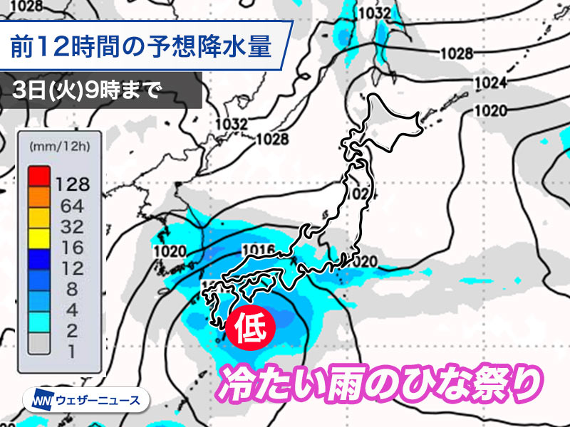 天気は短い周期で変化 ひな祭りは広範囲で冷たい雨