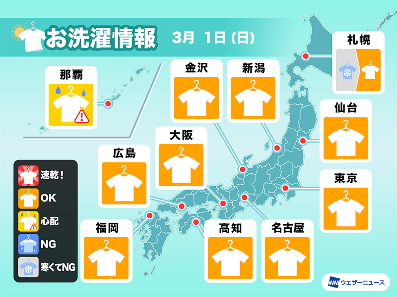 3月1日(日)の洗濯天気予報…