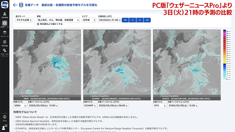 PCで数値予報モデルを比較する「ウェザーニュースPro」