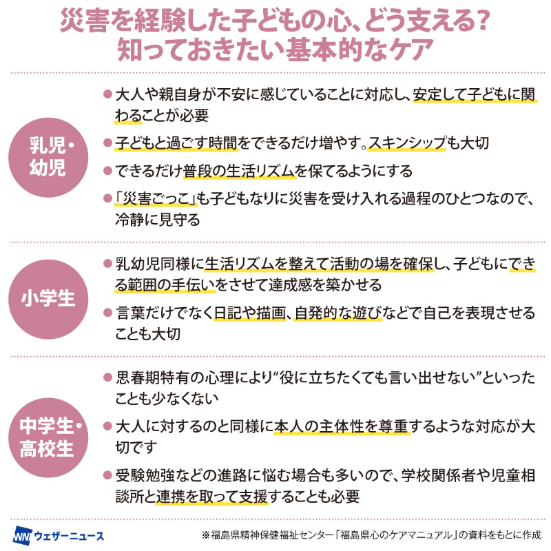そのほか、災害後の子どものメンタルケアとして、知っておきたい対応のポイントを教えてください。