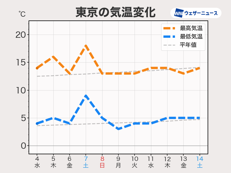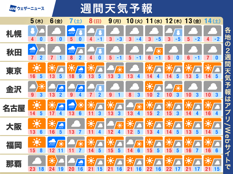 気温は高めの予想ですが、低気圧通過後は寒気が引き込まれ、寒暖差が激しくなりそうです。