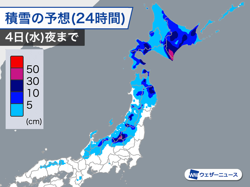 北日本は湿った雪による大雪 道東では50cm超の積雪も
