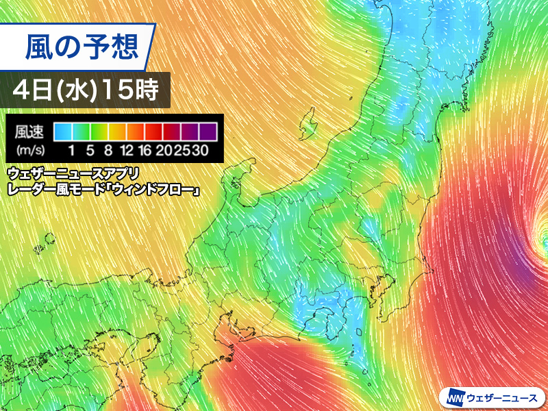 ただ、低気圧が急速に発達しながら離れるため、北寄りの風が強く吹きます。千葉県と茨城県には、暴風警報が発表される可能性があるとして、早期注意情報が発表されています。東京23区など市街地でも瞬間的に15〜20m/sの突風が吹く可能性があります。鉄道など交通機関への影響に注意し、時間に余裕を持って行動してください。