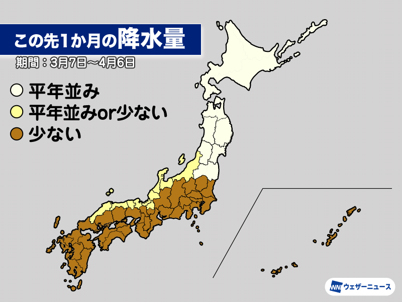 西日本、東日本の太平洋側は再び少雨傾向に
