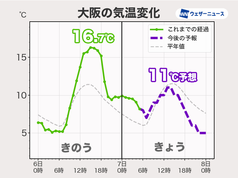 寒気が流れ込むため晴れても気温は上がりにくく、10℃を少し超える程度です。風も冷たいので、外出の時間帯によっては冬物の上着が良いかもしれません。