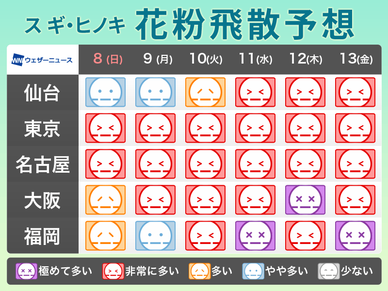 それでも、花粉の飛散には引き続き注意が必要です。九州から東北では、スギ花粉の本格的な飛散シーズンとなっています。