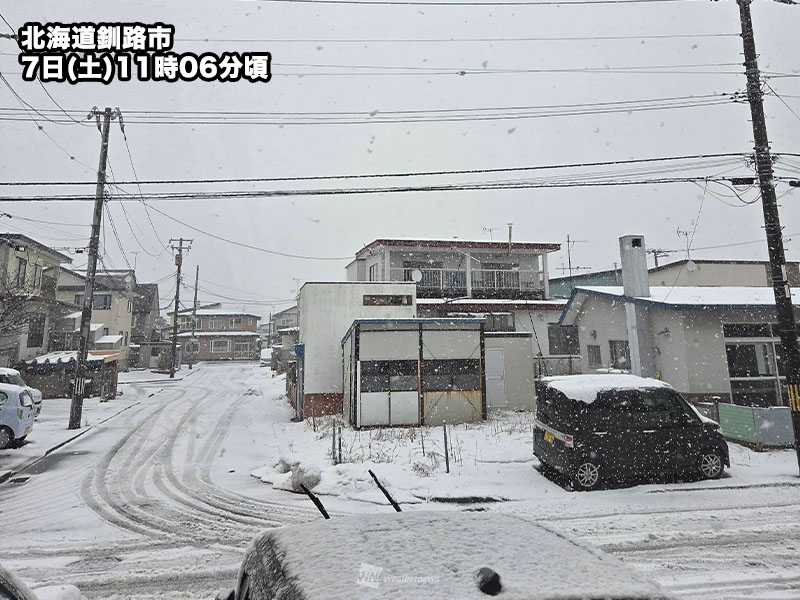 今日7日(土)は低気圧が発達しながら北日本に接近しています。北海道では広い範囲で雪が降り、道東太平洋側を中心に積雪の急増に注意が必要です。