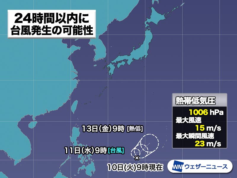 24時間以内に台風発生の見込み 次に発生すると“台風3号” 日本への影響なし