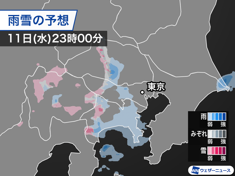 今夜は関東南部で雨や雪の可能性 遅い帰宅は雨具の用意を