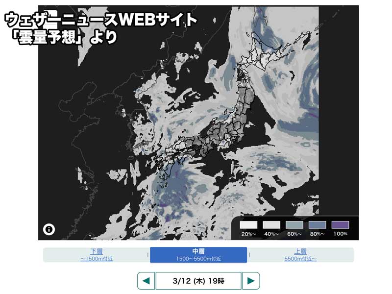 この先の「雲量」予想マップ