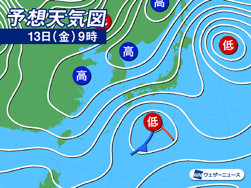 昼間もヒンヤリとした体感です。沿岸部では強風にも注意が必要です。伊豆諸島は暴風となるおそれがあります。
