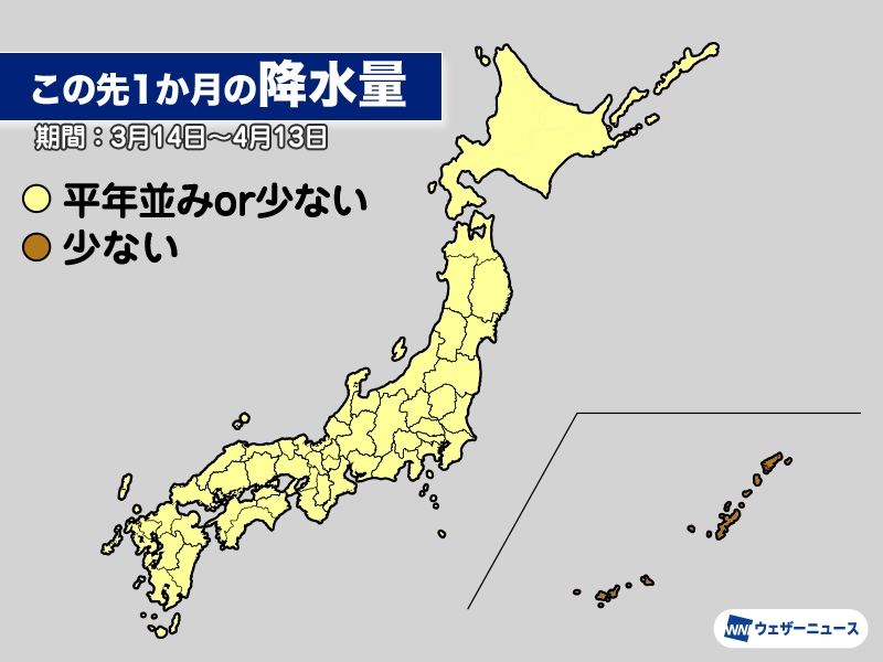 太平洋側では2月下旬からの天気の崩れで少雨傾向は幾分解消されましたが、再び雨が少なくなるため渇水による影響が懸念されます。