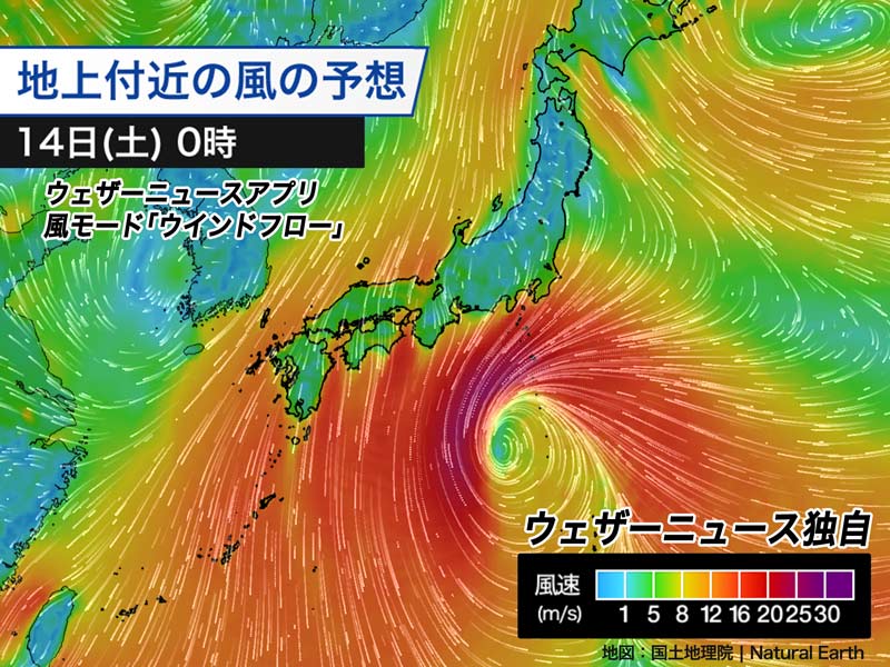 明日14日(土)は低気圧が東の海上に離れ、午後になると徐々に荒天のピークを越えます。ただ、引き続き風が強く吹き、沿岸では高波が続きます。