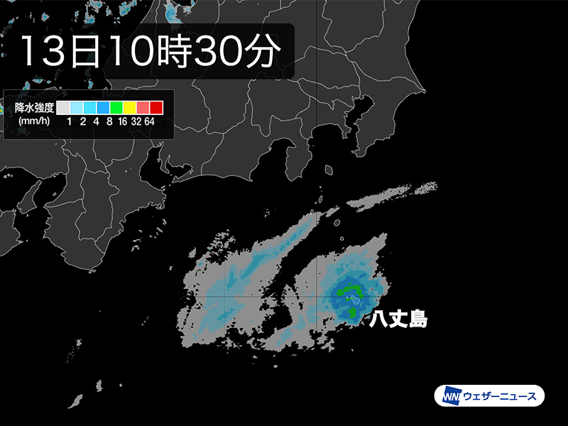 伊豆諸島では南部を中心に雨が降り、次第に風が強まります。今夜から明朝が荒天のピークで20m/s以上の強風が吹き荒れ、瞬間的に30/s以上の暴風が吹くおそれがあります。